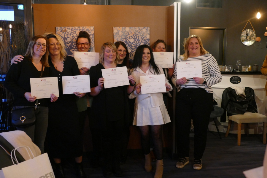 Nous félicitons Sandra, Isabelle, Tony, Sarah, Charlotte, Ingrid et Catherine pour leur investissement personnel dans la formation et pour leur réussite.